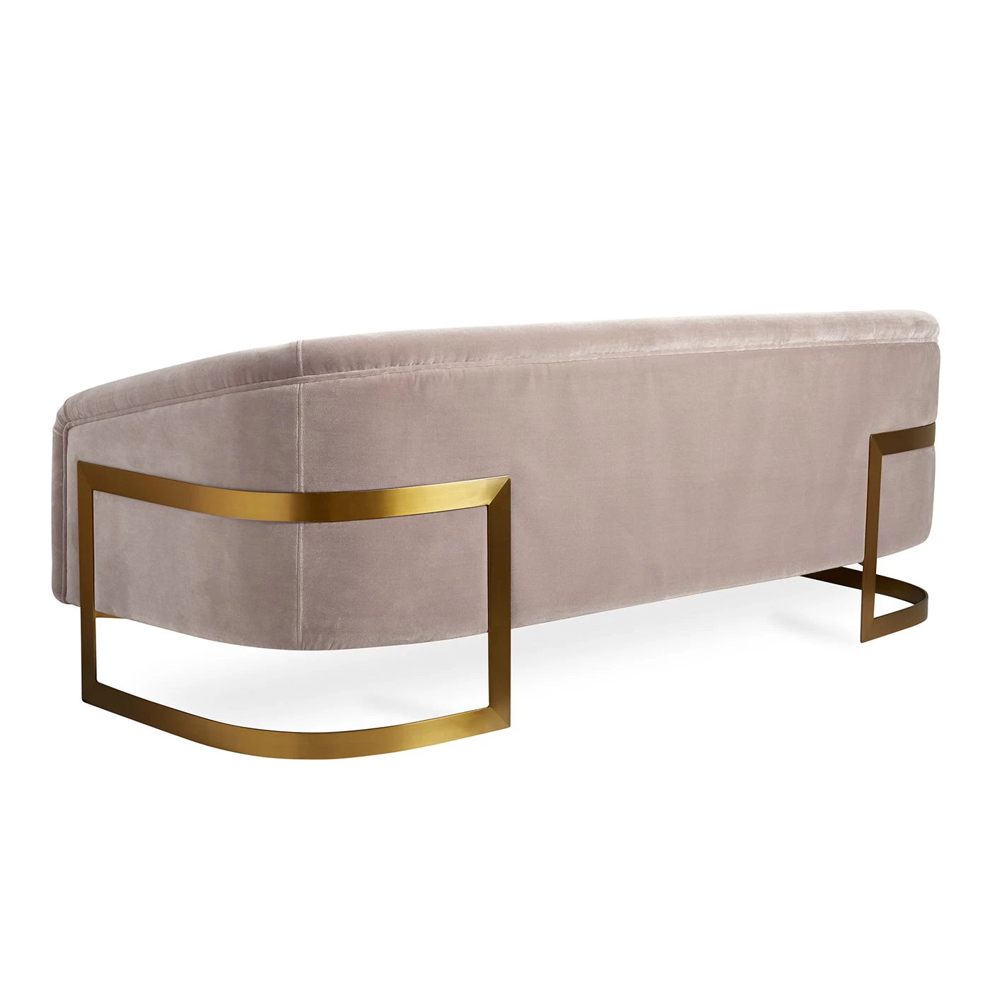 Think Halston, think Studio 54, think sybaritic style. Also think our signature Bacharach details, generously scaled for even more comfort. Featuring curved metal supports and fluid modern forms, this sofa is très chic from every angle. Sculptural enough to float in a large loft, but cozy enough to curl up and watch tv, our Bacharach Sofa shows you can have it all. Available in deep and luxe Rialto Reef velvet cradled in a brushed stainless steel frame or dreamy Como Champagne velvet cradled in a brushed brass frame.