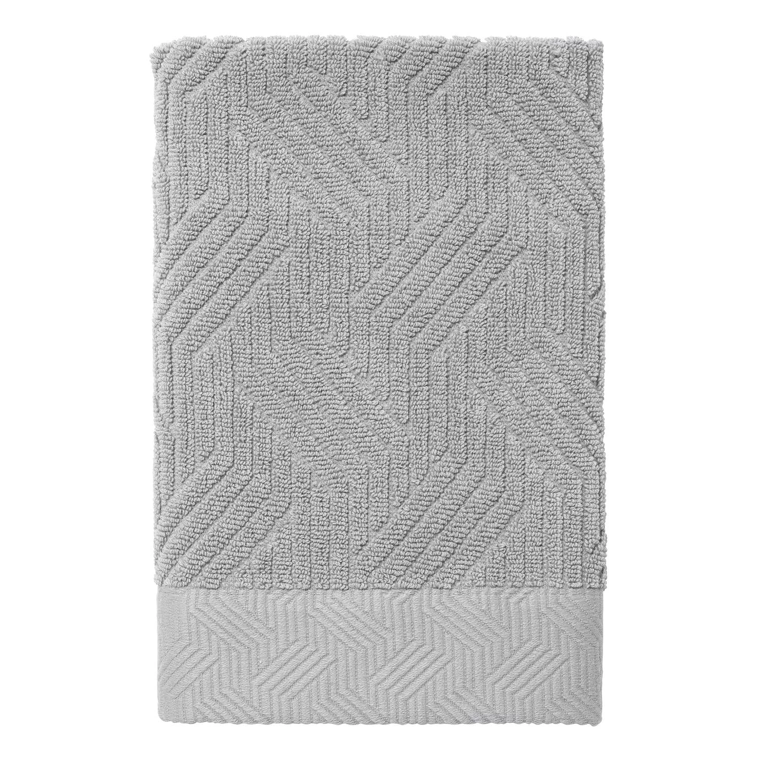 The Now House by Jonathan Adler Bleecker Hand Towel features a light grey carved contemporary pattern with woven decorative border. 100% cotton. Imported.