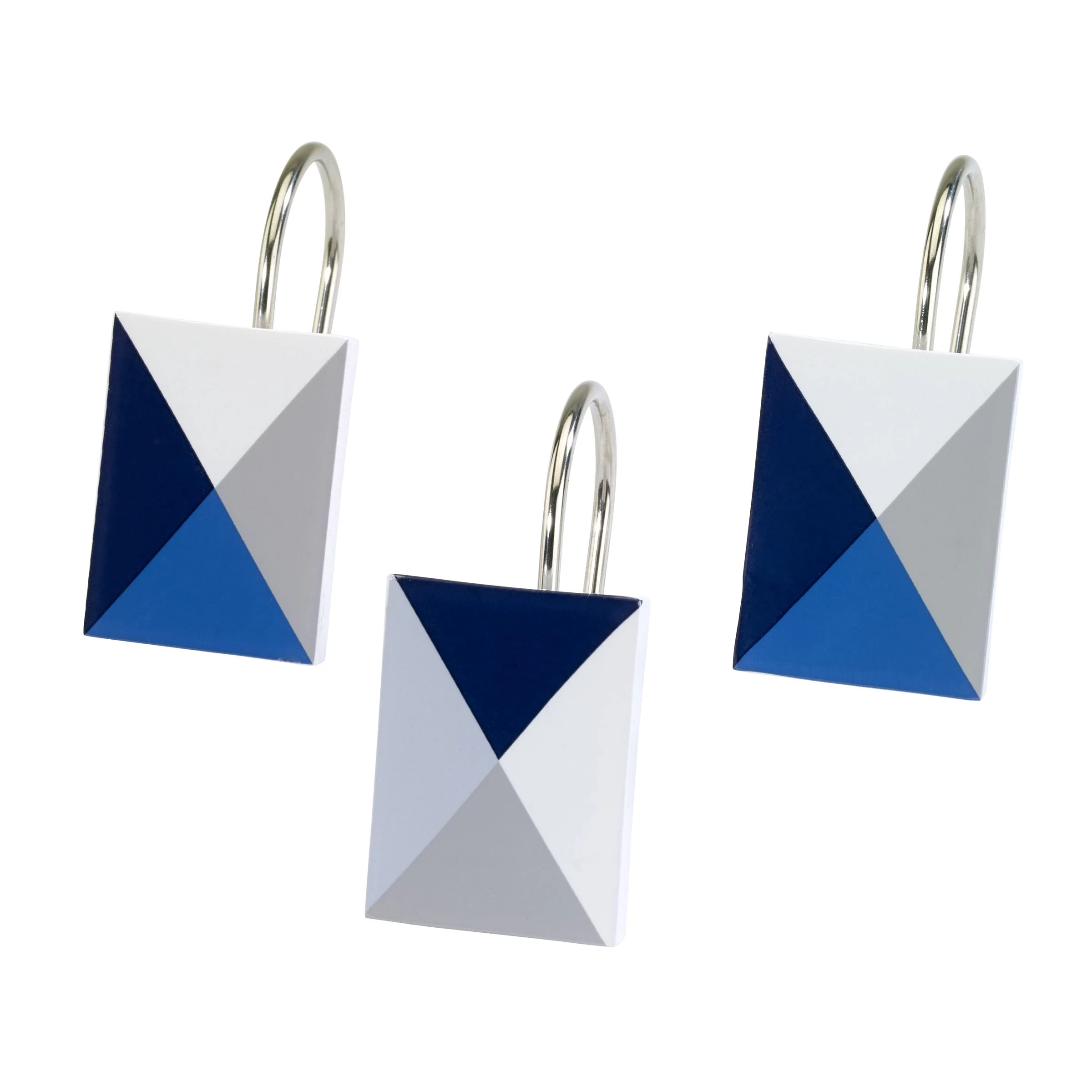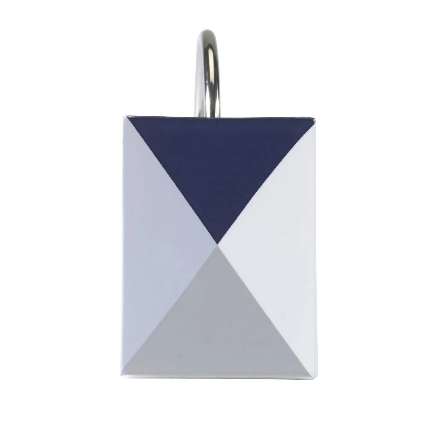 The Now House by Jonathan Adler Bleecker Shower Curtain Hooks is decorated with a triangle design decal in shades of blue, grey and white. Ceramic. Imported.
