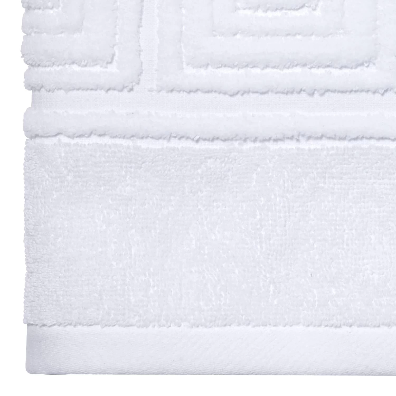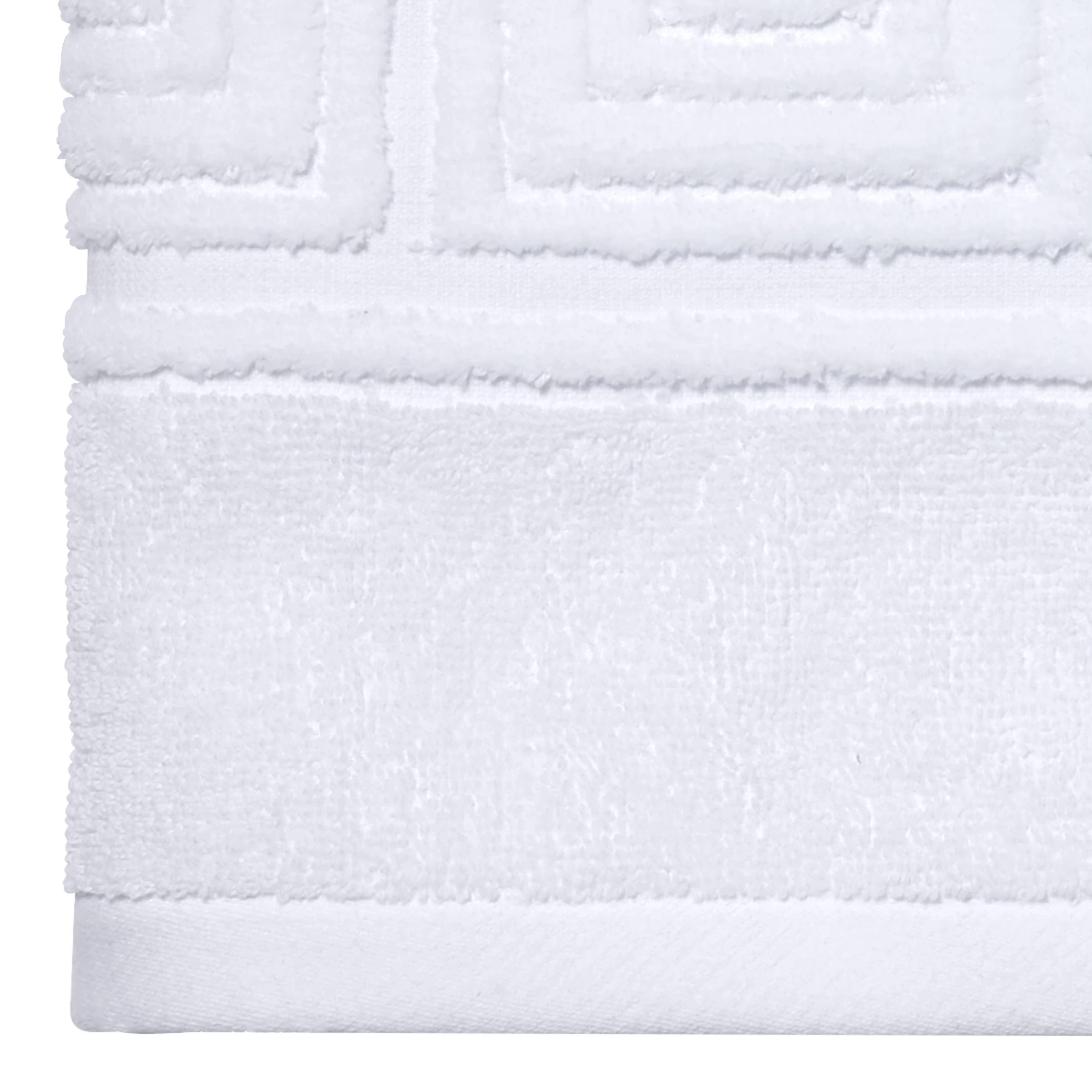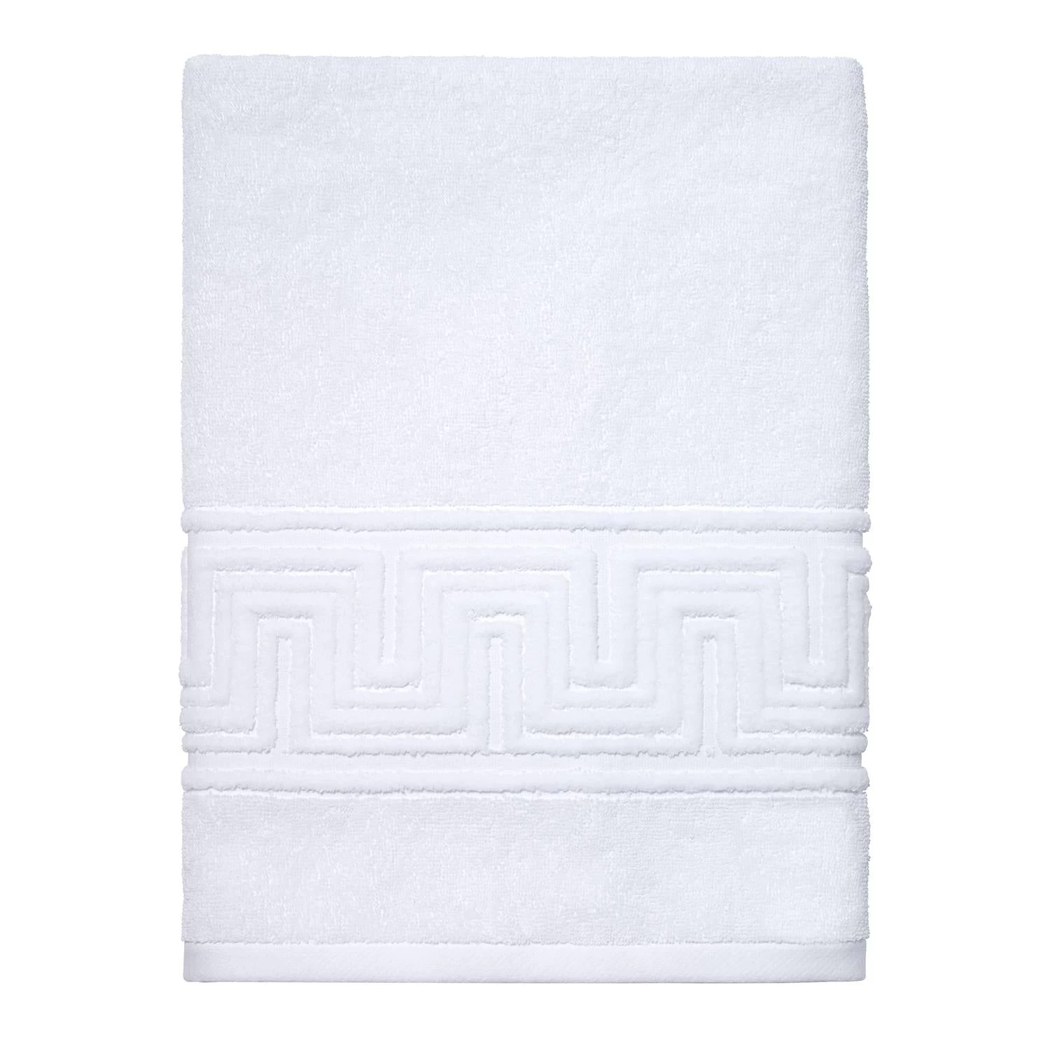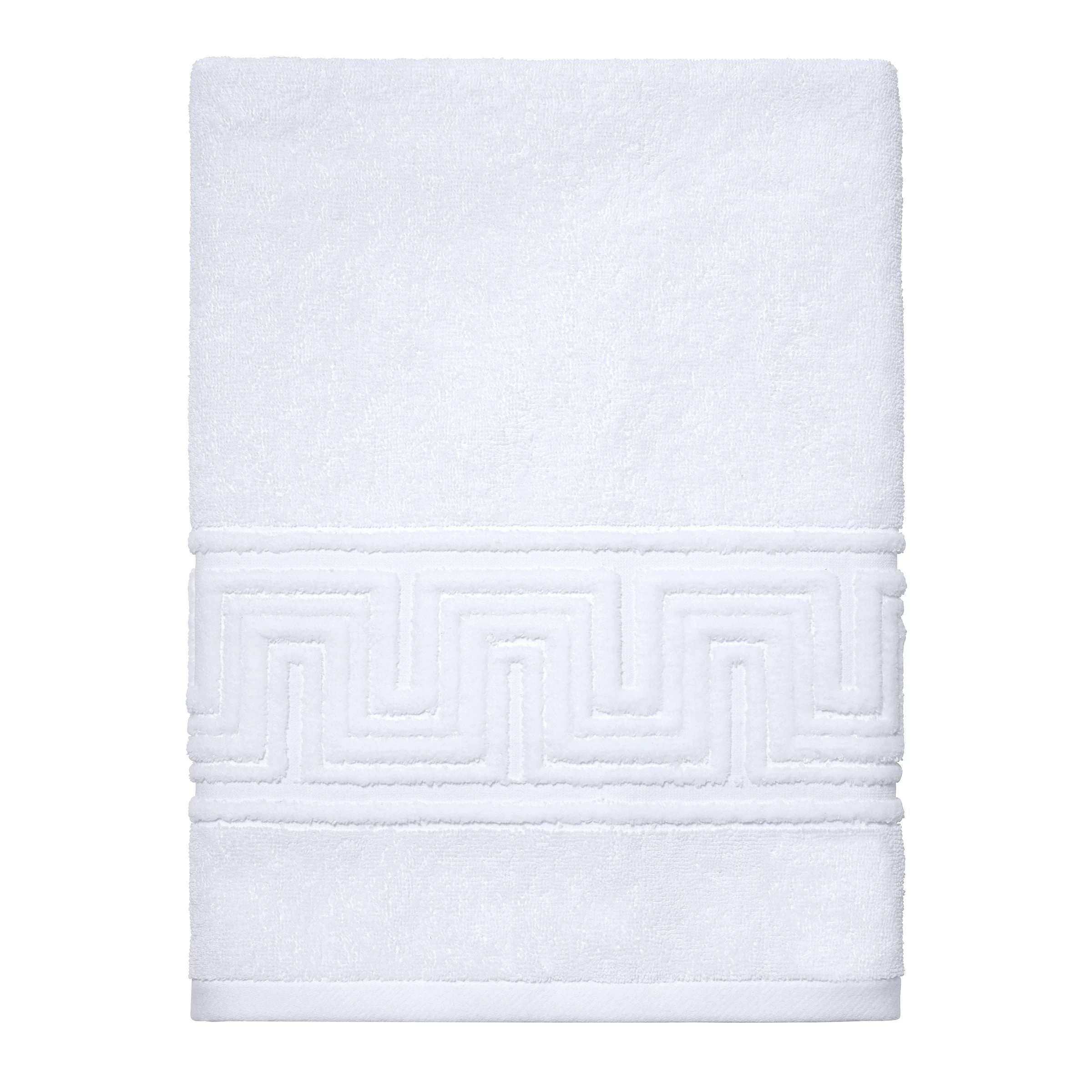 The Now House by Jonathan Adler Gramercy Bath Towel features a sheared and carved Greek Key border design. The white towel is made of 100% cotton. Imported.