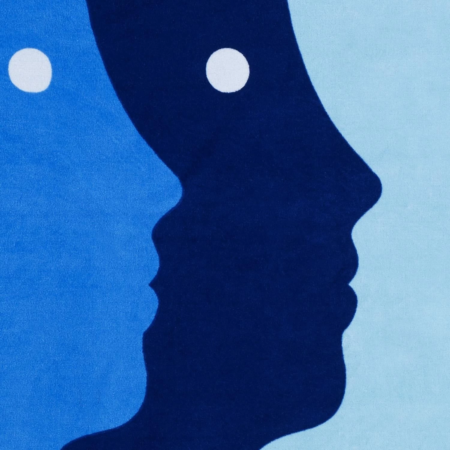 The Jonathan Adler Collection Atlas Head Beach Towel features trippy profiles in beach-perfect hues of blue on a sky blue ground with navy border. The front is sheared and the back is a sky blue yarn-dyed terry. The towel measures an oversized 40 in. x 70 in. and weighs over 2 pounds.