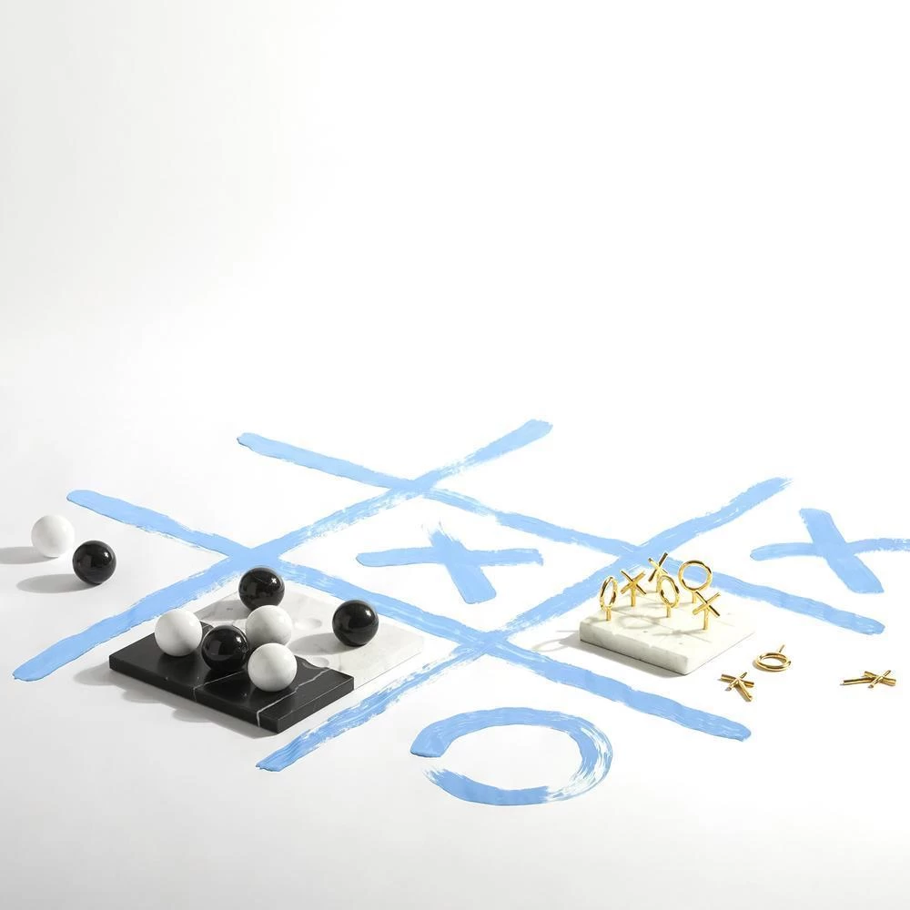 Play to win with our posh brass and marble Tic-Tac-Toe set. The grooved marble base is the perfect board for our sculptural brass playing pieces.