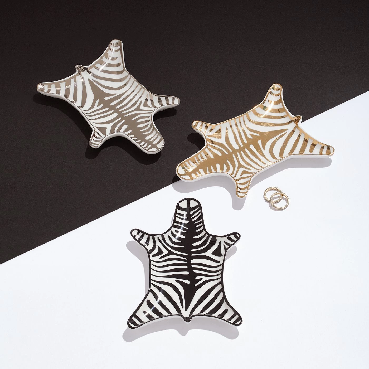 Our mini-homage to the majestic Zebra. Made from porcelain with a bold zebra print, the perfect pop of graphic glamour for any bedside, bathroom, or table setting.