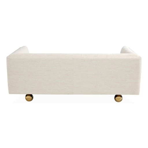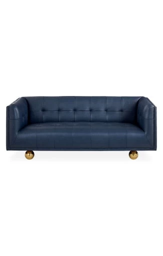 Our spin on the classic Chesterfield, sized for smaller spaces. We took the original profile—clubby comfort, tailored tufting—and made it modern with a pared down silhouette. The finishing touch: oversized (and ultra-glam) brass orbs in place of traditional wooden bun feet. The perfect balance of formal and fresh, its loungey depth and neutral linen or navy upholstery make it a must-have for any apartment, pied-à -terre, or petite room.