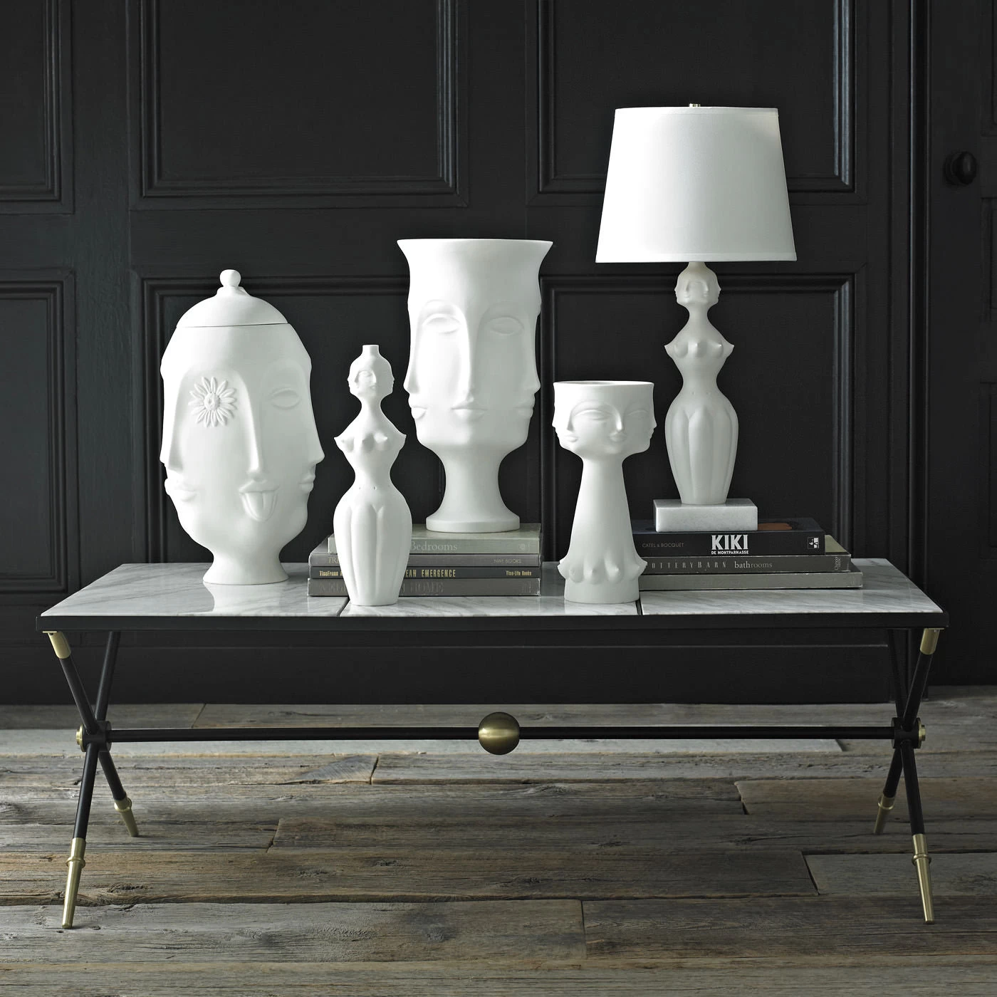 Jonathan sculpts and throws the models for our Muse pottery and then substitutes our signature geometric relief patterns with body parts—faces, breasts, lips—to create a surreal style. Pieces are inspired by our favorite artists’ muses.
