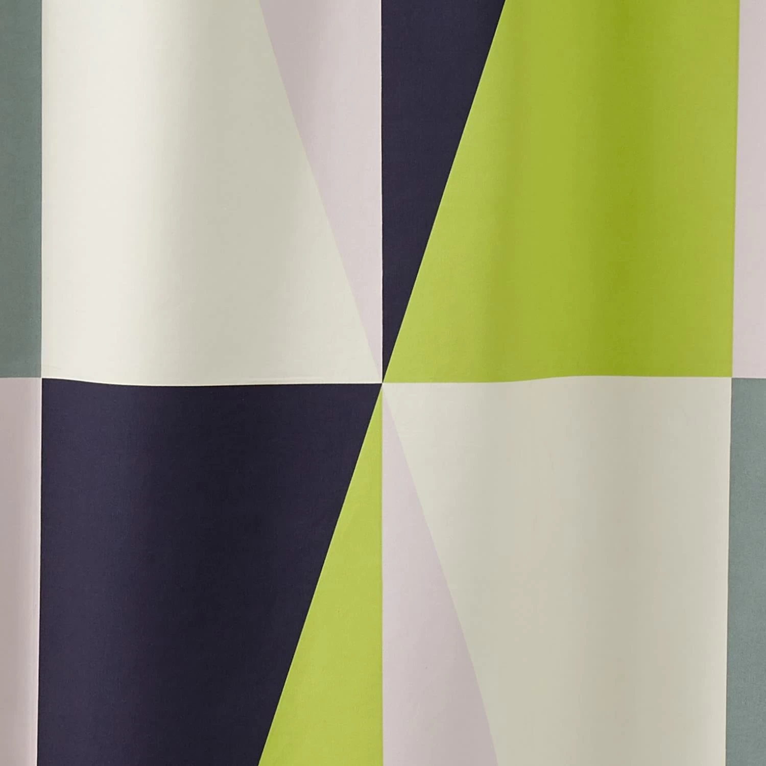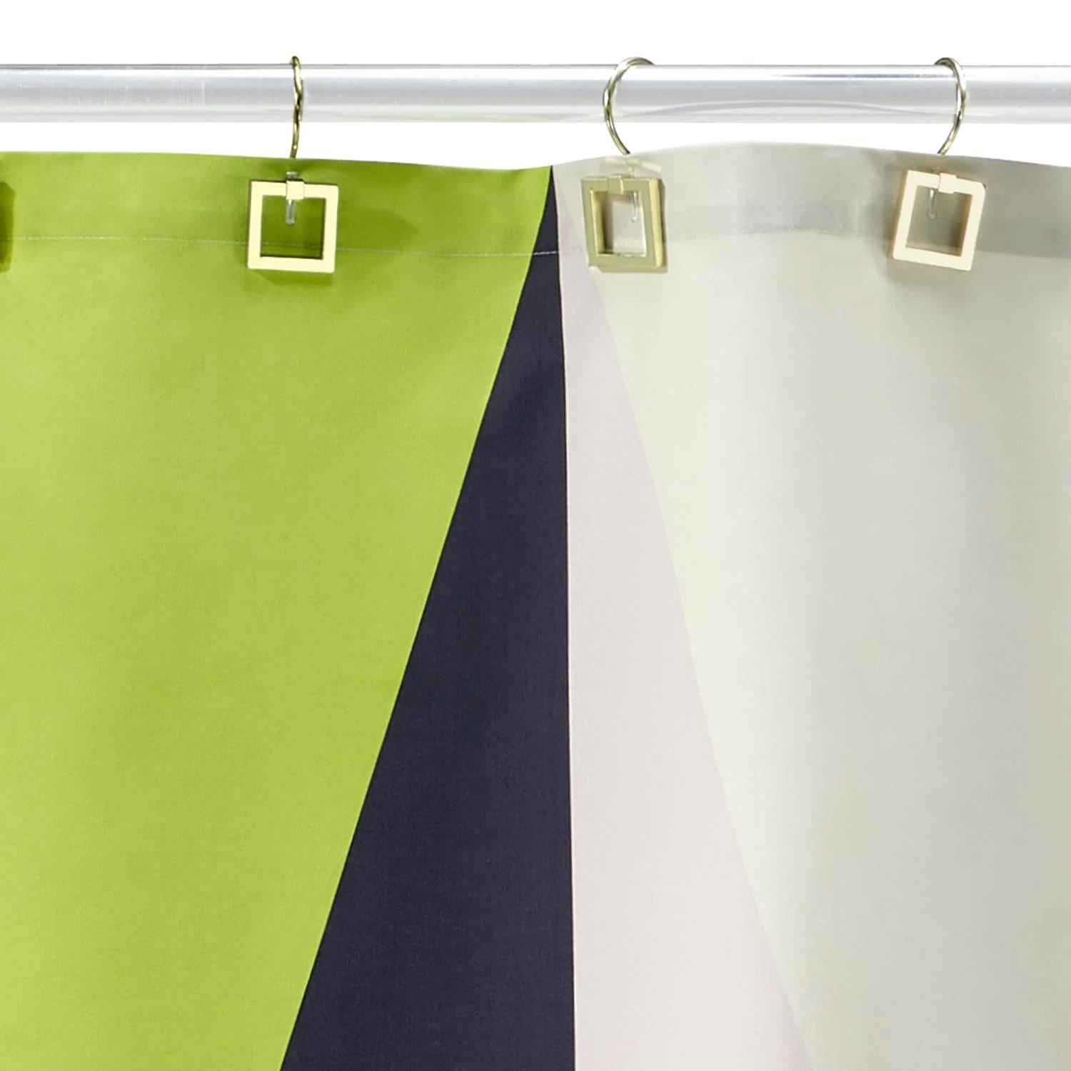The Jonathan Adler Collection Harlequin Shower Curtain features a beautifully printed updated, contemporary triangle design in lime and army green, pink, ivory, gunmetal grey and sky blue. 100% cotton duck cloth for soft feel and great look. 72″ x 72″.