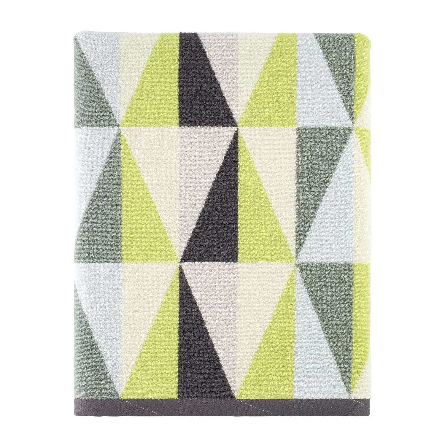 The Jonathan Adler Harlequin Decorative Bath Towel delivers a multi-color geometric design in lime and army green, pink, ivory, gunmetal grey and sky blue. 100% combed ring spun Turkish cotton yarn-dyed jacquard construction for superior softness, absorbency, durability. 27″ x 54″.