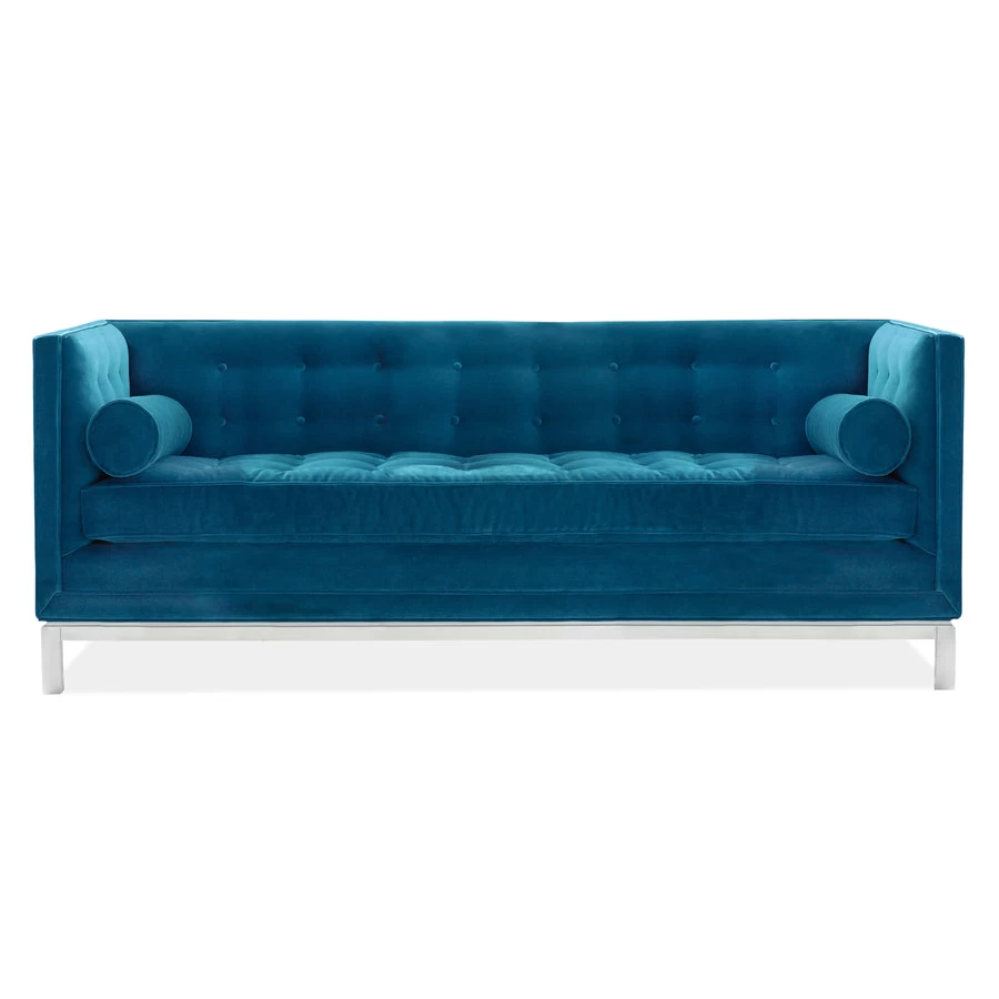 Our Lampert Sofa hits all the right notes—the high tuxedo back gives it an elegant yet formal presence, while the bolsters make it super comfy. Explore our custom upholstery program—you can’t go wrong with velvet. Our favorite combinations? Venice Peacock with white base evokes Hollywood glamour.