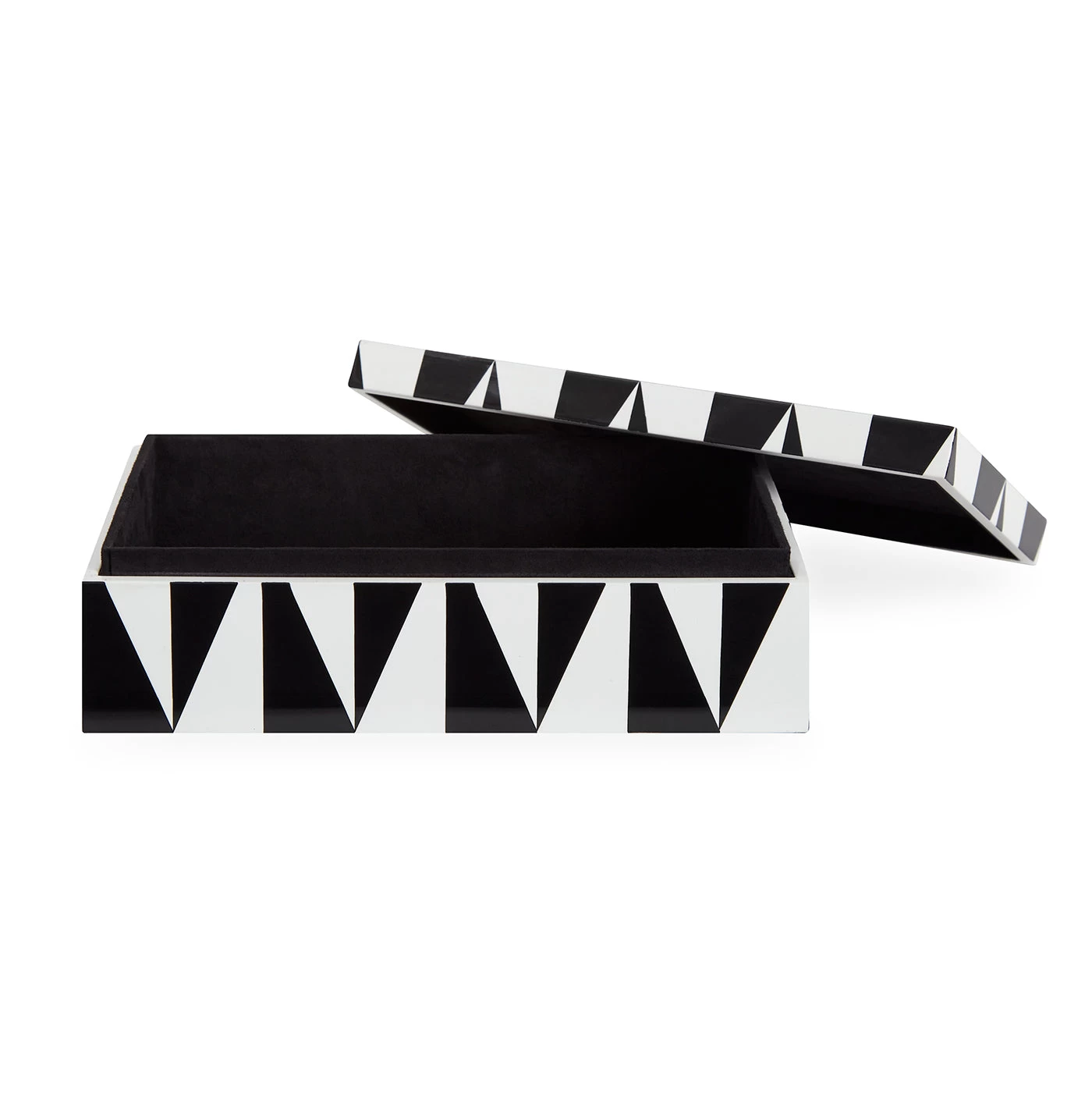 Mind-bending, hand-finished patterns in glam and glossy, high-contrast lacquer—our Op Art Lacquer Boxes POP. Keep your possessions handy but hidden while you luxe up your shelf, mantel, or tablescape. Available in three sizes for stashing, stacking, or making a stand-alone statement.