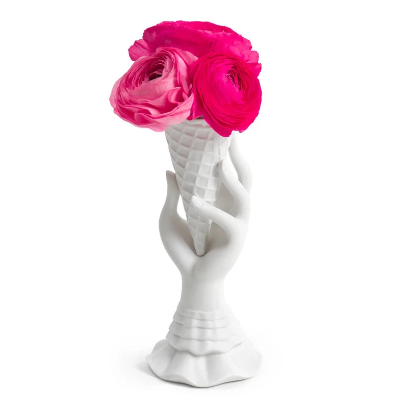 The iconic I-Scream Vase, featuring flawless, fluid lines and an Elizabethan ruff sleeve.