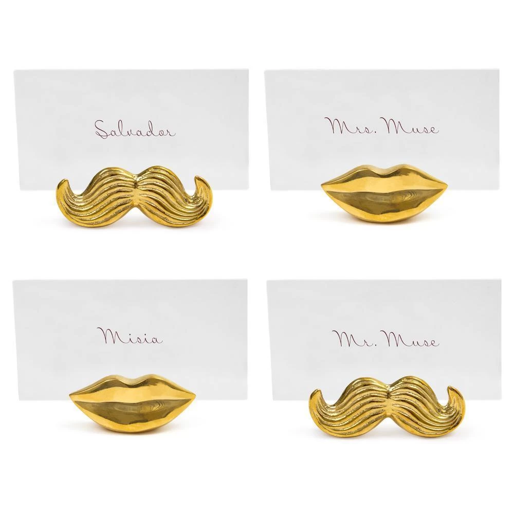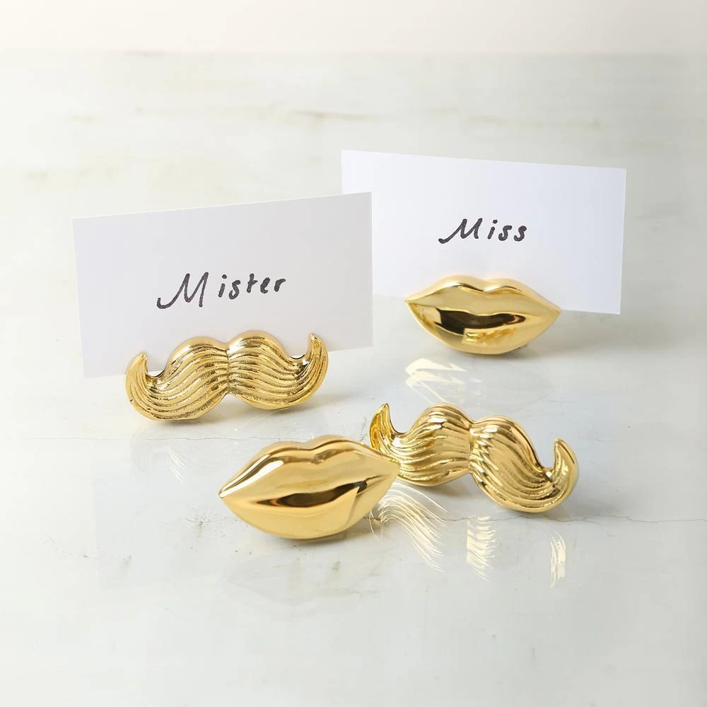 Keep your guests from guessing. Each set includes four solid brass place card holders—two mustaches and two lips. Slotted tops hold place cards to create a sublime table setting. Makes a great wedding gift—or an excellent way to elevate the everyday.