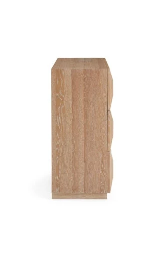 Crafted from wire-brushed and limed solid oak and featuring three drawers faced with ivory leather insets detailed with timeless topstitched borders. Perched on a recessed base, our Otto Three-Drawer Cabinet feels couture in your Brooklyn Brownstone and chic in your Tribeca loft. Our collection of artisan crafted solid oak furniture is as mighty as its source. Wire-brushing exposes the natural wood grain and our liming technique accentuates each solid piece of wood’s unique pattern. A nod to French 50s cool, a dash of Milanese moxie, and a whisper of Scandinavian soulfulness.