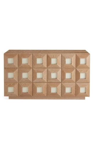 Crafted from wire-brushed and limed solid oak and faced with a dimensional pattern featuring ivory leather insets detailed with timeless topstitched borders. Perched on a recessed base, our Otto Buffet is large and in-charge, offering ample storage space. Couture in your Brooklyn Brownstone and chic in your Tribeca loft, we love it paired with our Brussels T-Base Dining Table for a fresh mod yet luxe dining experience. Our collection of artisan crafted solid oak furniture is as mighty as its source. Wire-brushing exposes the natural wood grain and our liming technique accentuates each solid piece of wood’s unique pattern. A nod to French 50s cool, a dash of Milanese moxie, and a whisper of Scandinavian soulfulness.