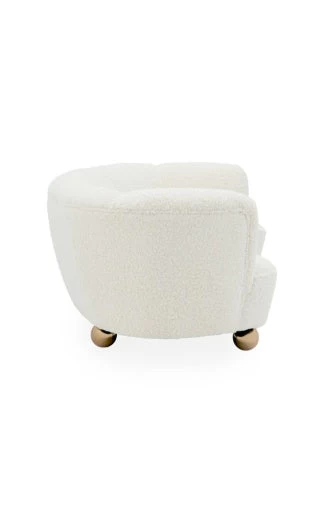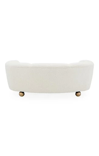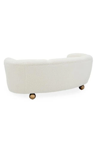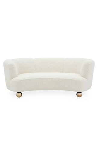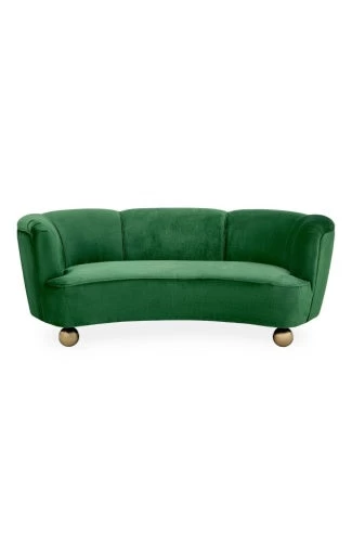 Our petite Parker Curved Sofa’s inviting, gentle curve channels aprés-ski chic in textural Teddy and is an eye-catching gem in saturated jade velvet. We swapped traditional bun feet with polished brass orbs for a glint of glamour. A super comfortable, incredibly chic power piece that fits wherever you need a fabulous seat.