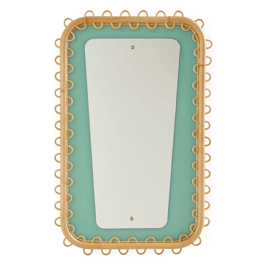 Our Riviera collection is the update on classic French 50s rattan you’ve been waiting for. Evoking grand global glamour, our Riviera Accent Mirror features exquisite craftsmanship—reeds are steeped in water, hand-coiled, then fastened to framework. Finished with a satin lacquer topcoat to give the naturally warm tones a luxe sheen, and inset with back painted glass in sea-inspired celadon. Paired it with our Riviera Floating Console.
