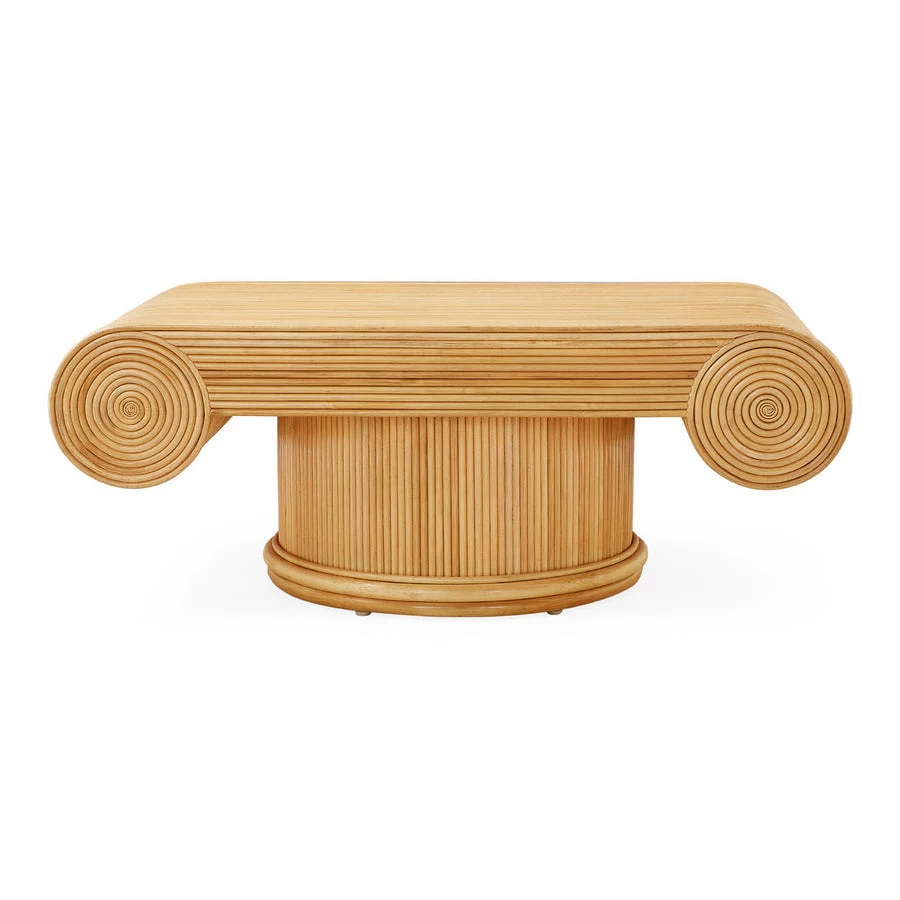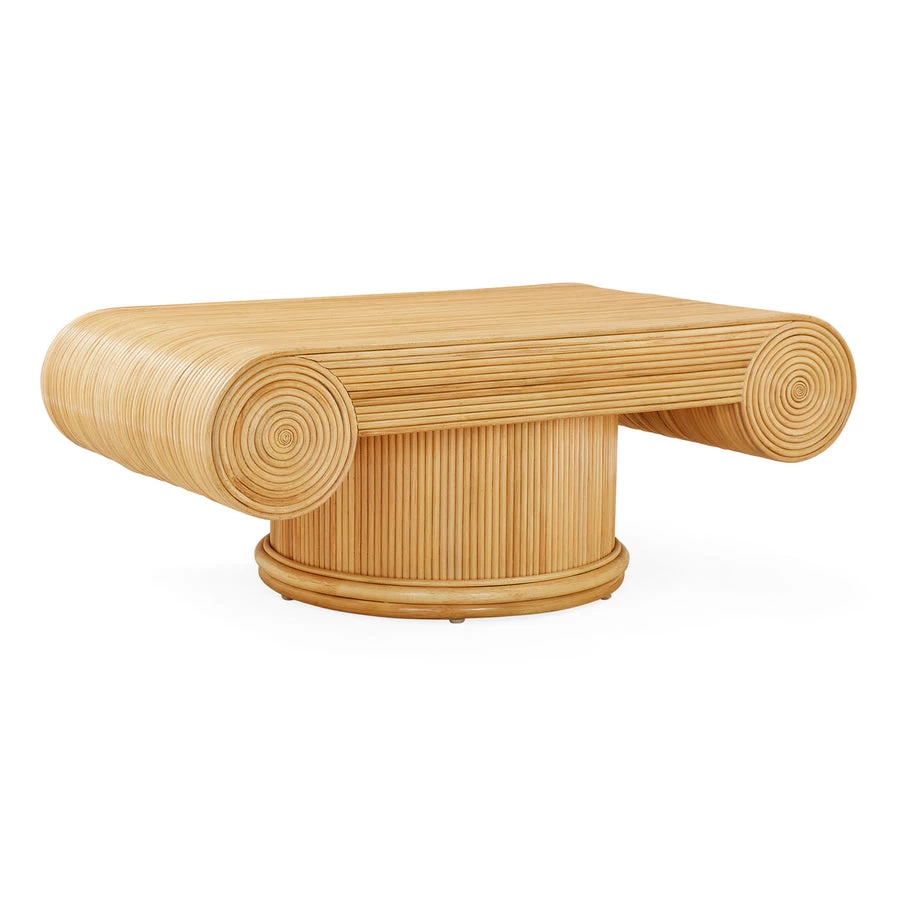 Neoclassical style meets natural craftsmanship. Our Riviera Capital Cocktail Table is constructed from thick reeds that are steeped in water, then hand-coiled and fastened to framework. A satin lacquer topcoat gives the naturally warm tones a luxe sheen. Perfect in your Palm Beach pad or your Brooklyn Brownstone study.