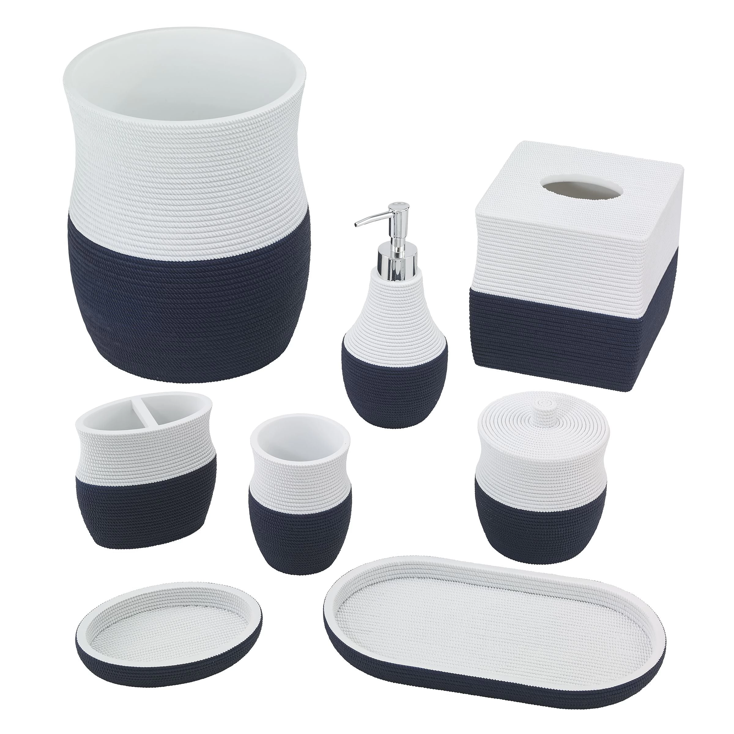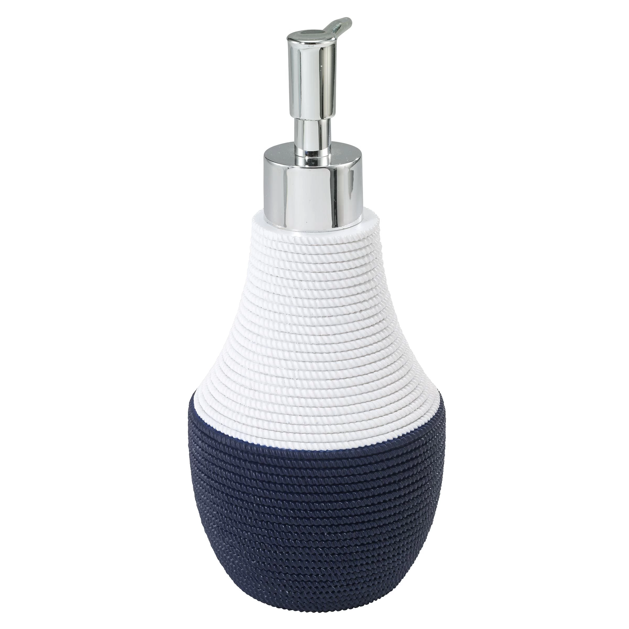 The Avanti Wilmington Lotion/ Soap/ Sanitizer Dispenser delivers the look of wicker with the durability to handle bathroom conditions, looking great for years. Its coastal inspiration & white and navy colorblock look make it an easy fit for many homes.